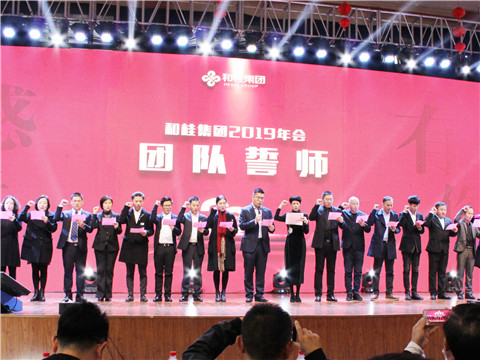 大會伊始,集團總裁黃偉文進行年度總結和2019發展的布局,他表示源生堂的2018年是砥礪奮進的一年,源生堂深度探索Shopping Mall發展模式,成績喜人,與華潤、萬達等地產大咖達成戰略合作;未來源生堂將圍繞品牌推廣標準化、產品項目系統化、線上線下閉環化、直營模式榜樣化、加盟管理復制化、人才分級共享化,為更多人實現老板夢。帶著必成的決心,源生堂團隊立下目標責任狀并宣誓,使命必達。
