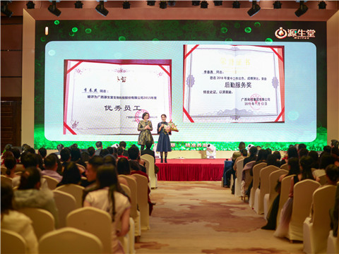 源生堂的奮斗者讓人敬佩,他們的奮斗故事激勵人心。源生堂員工代表教育部李春燕老師,十五年來與公司共同成長,是源生堂“匠心精神”的代表;北海區域周斐,入職一年便成為本草養發市場的開拓先鋒,始終保持“狀態在,業績在”的沖鋒精神;柳州區五星店店長梁慶輝大膽突破、不懈努力,“小輝精神”感染和鼓舞著現場的每個人。此外,源生堂還為員工家屬代表頒發感恩禮,對他們的支持表示感謝。家屬代表分享表示:“源生堂讓我們一家過上了幸福的生活,讓兒女擁有了一份很好的事業,我們十分感激公司對他們的培養。”